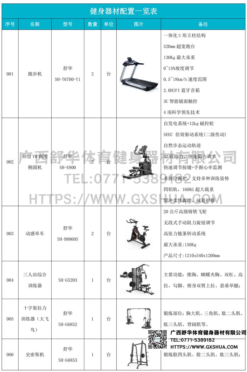2.huatihuiX5-E椭圆机SH-E800*2台-自发电系统,摆脱地束缚+12Kg飞轮总成,运动更顺畅,最高350W功率,适配各种锻炼强度需求;SEEC 倍效驱动系统(二级传动),1:16超大传动比,运转更流畅相比传统驱动,更多30%发电量;自然步态轨迹,让运动更舒适EVA缓冲脚垫,有效减少关节损伤,20英寸步幅,符合亚洲人体工学;高品质商用仪表,四窗口显示屏幕32段阻力,快速阻力调节无线心率模块;铝合金四轨道,运动更稳定最大支持160KG提供,满足全人群静音铝轨,运动无声。