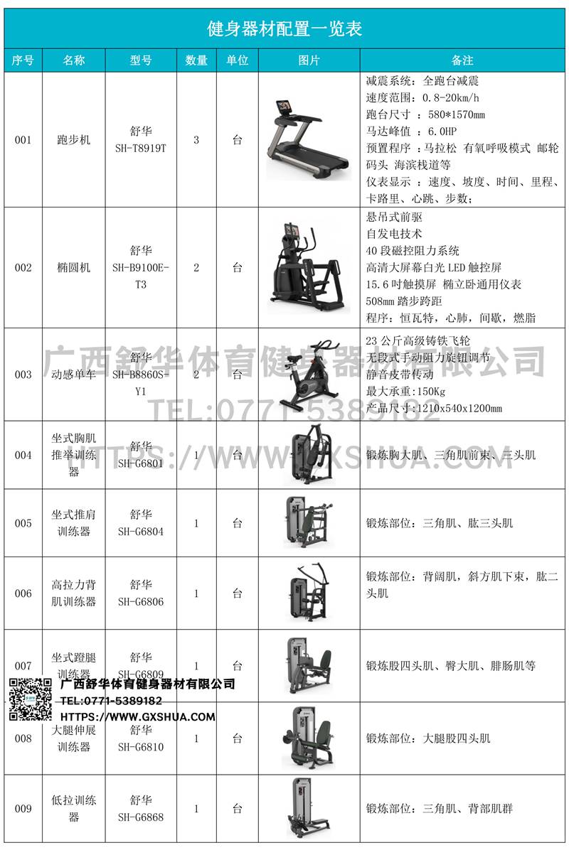 1.huatihuiV9+跑步机SH-T8919T*3台-V9+采用全跑台减震设计,为跑者提供舒适的落脚地感和稳定的跑步支撑,良好的缓冲防护,降低膝关节受伤风险。商用大跑台,为跑者提供从容奔跑空间,180kg承载力,580*1570纯跑台面积,满足专业健身需求。V9+采用F级商用马达,6HP峰值马力,20km/h最高速度,提供源源不断的动力。